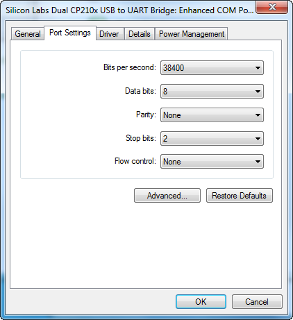 The values of all three (CAT MENU settings, N1MM Port settings and PC Port settings) must match for any communication to take place between the PC and the Radio. Finally, go into the Device Manager in the WINDOWS Control Panel and find the COM Port you will be using. It should be under COM and LPT Ports. Right-click “Properties” and you should see a screen like the one below: