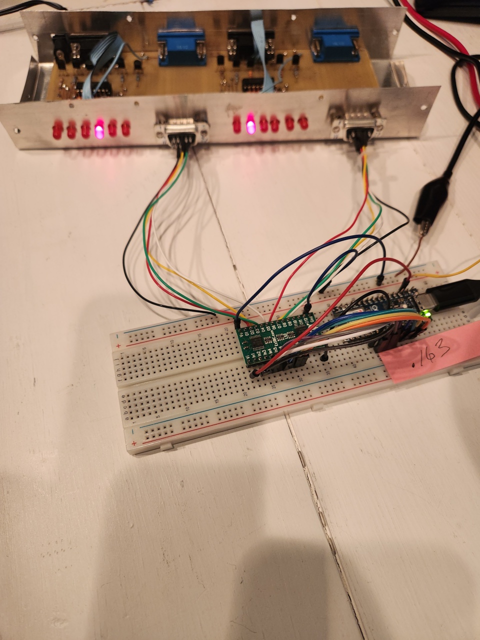 The protoype for automating the switch consists of a Wifi-connected Arduino Nano ESP32 and a logic level shifter board. Data outputs from the Nano use 3.3 volt logic. The level-shifter board is included to convert to the 12-volt logic levels needed by my 2X6 switch.